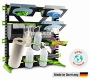 Das Arbeitsplatz-Organisationssystem SmartRack® ist eine auf die jeweiligen Bedürfnisse des Anwenders anpassbare Systemlösung zur optimalen Aufbewahrung von Arbeitsmitteln, Verbrauchsmaterialien und Glasgeräten im Labor. Die Basis bildet ein stabiler, belastbarer Rahmen aus pulverbeschichtetem Aluminium, an dem unterschiedliche Module befestigt werden. Diese Module aus Polyamid 12 können beliebig angeordnet sowie flexibel eingesetzt werden und sind in Stückzahl und Position frei kombinierbar. Sie sind abwaschund desinfizierbar, autoklavierbar, chemikalien- und UV-beständig.
