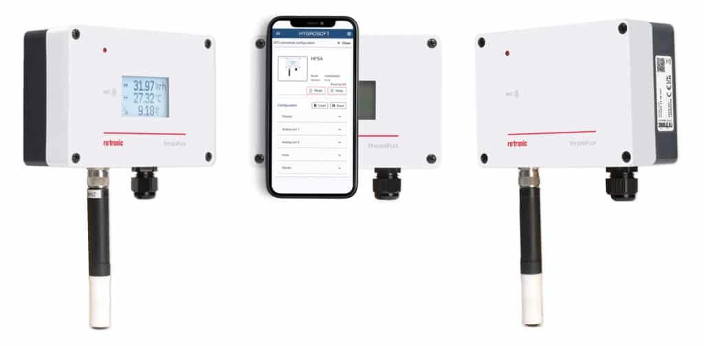 Der neue «HygroFlex Advanced HF5A» von Rotronic kombiniert Feuchte-, Temperatur- und Taupunktmessung mit Smartphone-Kompatibilität. Der Messumformer ist dank der integrierten NFC-Technologie besonders einfach konfigurierbar.