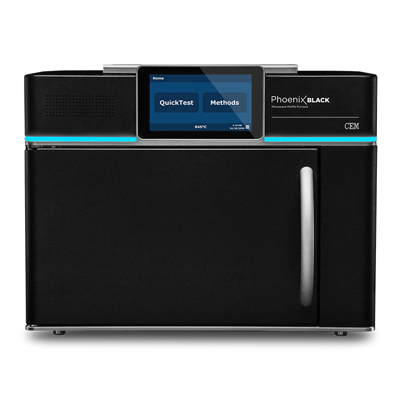 Unter Veraschungen in einem Muffelofen versteht man die thermische Zersetzung kohlenwasserstoffhaltiger Produkte, wobei die anorganischen Bestandteile zurückbleiben. Im Typ «Phoenix Black» geht das gemäss Hersteller bis zu 97 Prozent schneller als bei herkömmlichen Muffelöfen. Und einfacher: Neben der drastischen Zeitreduktion im auch ein «sauberes» Arbeiten ermöglicht. Das eingebaute Abluftsystem entfernt Rauch und Dämpfe selbstständig. Was mit der konventionellen Technik früher Stunden benötigte, wird mit der Phoenix-Technologie jetzt in nur wenigen Minuten erreicht. Das Abkühlen der Porzellantiegel in Exsikkator entfällt. Die CEM-Tiegel kühlen nach 10 Sekunden ab und können somit unmittelbar auf der Waage zurück gewogen werden.